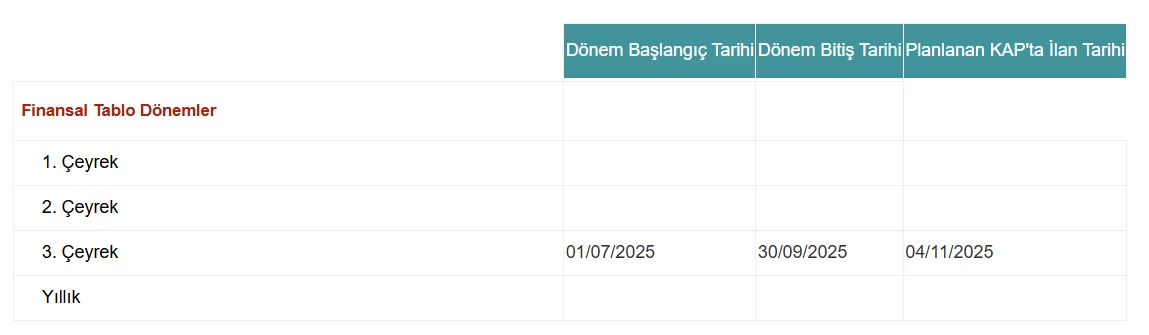 Aselsan Elektronik Sanayi ve Ticaret A.Ş. (ASELS), Kamuyu Aydınlatma Platformu’na yaptığı bildirime göre 01.07.2025–30.09.2025 dönemini kapsayan 3. çeyrek finansal raporlarını 04.11.2025 tarihinde açıklamayı planlıyor.