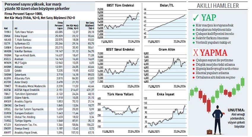 Borsada personel sayısı 1.000’i aşan ve net kâr marjını %10’un üzerinde tutan 26 şirket bulunuyor. Bu gerçeklik, yüksek istihdamın bilançonun sırtında taşınan ağır bir maaş yükü olmadığını gösterirken, çarkları hızlandıran en güçlü sermaye olduğunu işaret ediyor.