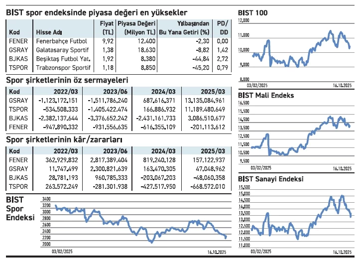 BIST Spor Endeksi’nde yer alan dört firma hem zarar hem de değer kaydında yarışıyor. Yılbaşından bu yana gerileyen iki hissenin kaybı %10’un altında kalırken en yüksek kayıp %45’i aştı.